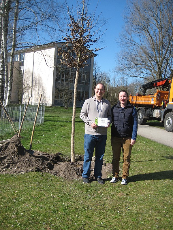 Mitarbeiter der Bauhofes hatten alles perfekt vorbereitet und Bürgermeister Martin Schäfer sowie die Agenda 21 Sprecherin Karin Schwarzbauer freuten sich mit allen Teilnehmern über die gelungene Aktion, mit der inzwischen 37 Bäume in Gröbenzell neu gepflanzt wurden.