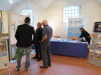 Schon ein vielfältiges Programm empfängt mich gleich im Foyer, ich aber entscheide mich zunächst, die Infostände im Hermann-Böcker-Saal zu besuchen.