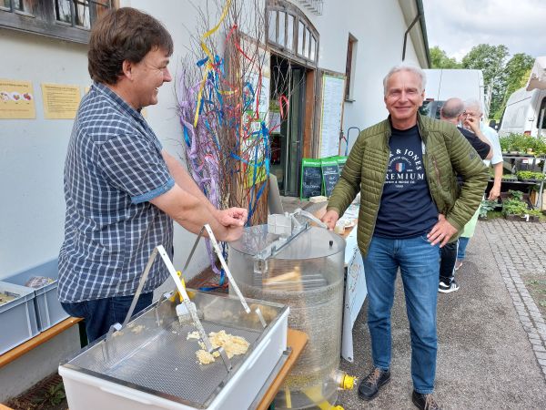 Diese Fragen beantwortete der Imkermeister Christian Engelschall an seinem Stand. Dazu erhielten die Besucher Einblicke in die Arbeit des Imkers und konnten vor Ort erleben, wie Honig geschleudert wird.