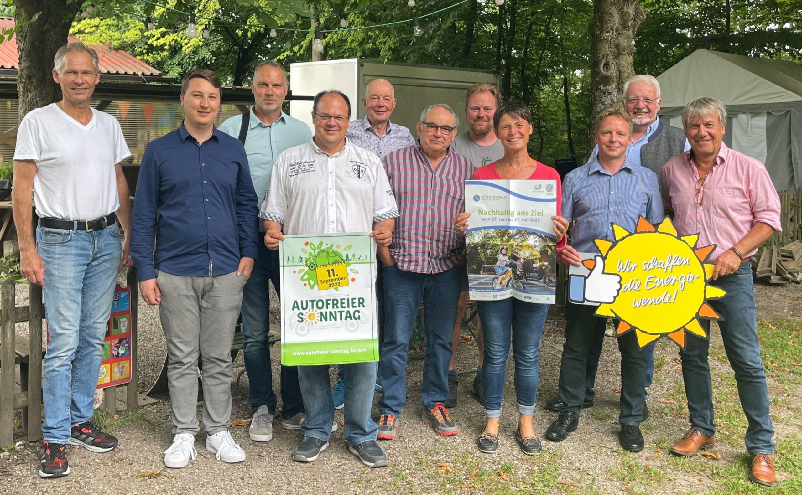 Das Foto zeigt vl. Markus Droth (FFB), Matthias Rautenstrauch, Tobias Schmid (beide LENA GmbH), Oliver Berger (STA), Berthold Lesch (Landsberg), Eugen Schäfer (Landsberg), Michael Wölf (Eichenau;), Barbara von der Ropp (starnberg), Bernhard Ulbrich (Puchheim), Max Keil und Gottfried Obermair (ZIEL 21)