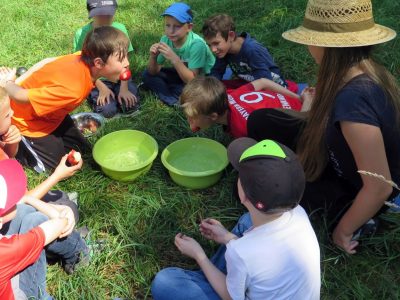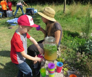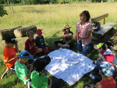 Nun bin ich neugierig, welche der vielen Ereignisse den Kindern über die Ferien hinaus in Erinnerung bleiben werden: Ob die Spinne, das Wasserpumpen an der Schwengelpumpe, das Apfelschnappen-Spiel, das Schütteln von Sahne zu Butter, der leckere Kräuterquark oder doch das ein oder andere Wiesenkraut, das sie nun im Garten und der Natur selbst bestimmen können! Schön war´s miteinand.