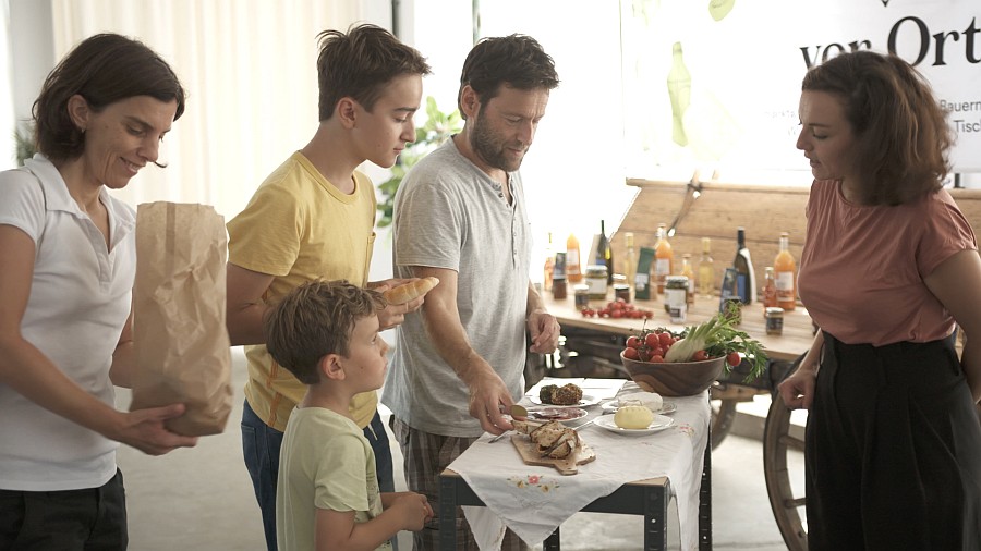 Familie Kovacs probiert Frisches aus der Direktvermarktung. – © Langbein & Partner – Media