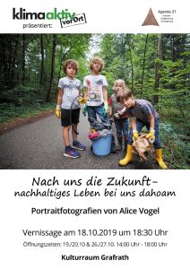 Ausgehend von diesen Fragen präsentiert ‚Klimaaktiv vor Ort‘ vom 18.-27. Oktober 2019 im Kulturraum Grafrath eine Fotoausstellung, bei der Bürgerinnen und Bürger von Grafrath und Kottgeisering in Bild und Text portraitiert werden. Es handelt sich um „normale“ Menschen, die gleichzeitig eine Besonderheit haben – sie leben in einem kleinen Bereich ihres Alltags klimafreundlicher und nachhaltiger als viele andere. Sie tun das, weil es zu ihnen passt und es ihnen damit gut geht.
