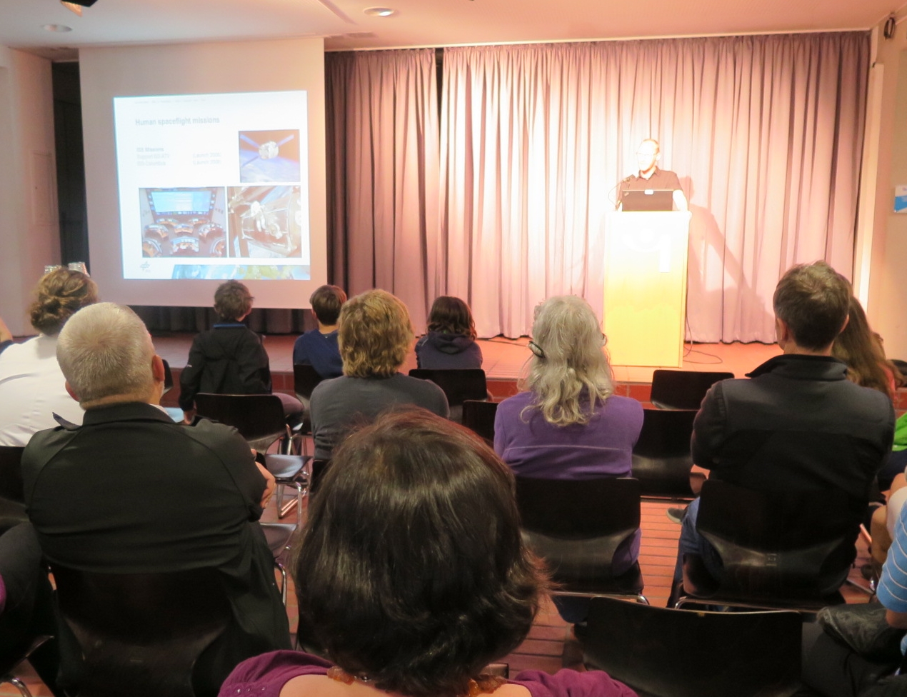 Ergänzend zu den Projektvorstellungen an den jeweiligen Ausstellertischen wurden Vorträge gehalten u.a. von Andreas Spörl vom Deutschen Zentrum für Luft- und Raumfahrt (DLR) über seine hochinteressante Arbeit an einem Satelliten, der mit Infrarottechnik Bilder der Erdoberfläche aufnimmt. So ein Vortrag vermittelt nicht nur Wissen und Staunen, er zeigt den Schülern auch einen Weg auf, wohin die Reise der Wissenschaft für jeden einzelnen beruflich gehen kann.