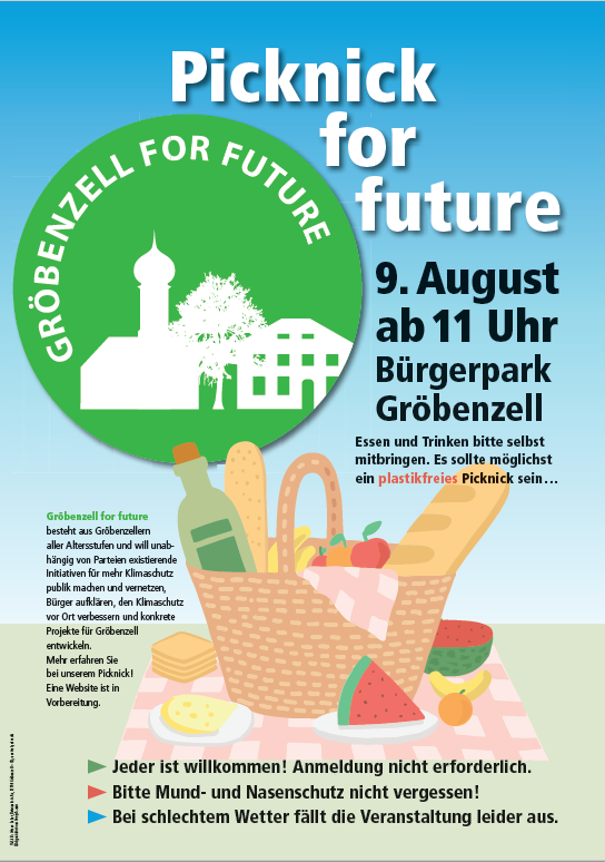 Gröbenzell for Future lädt am 9. August 2020 ab 11 Uhr ein zu einem öffentlichen Picknick in den Gröbenzeller Bürgerpark ein.