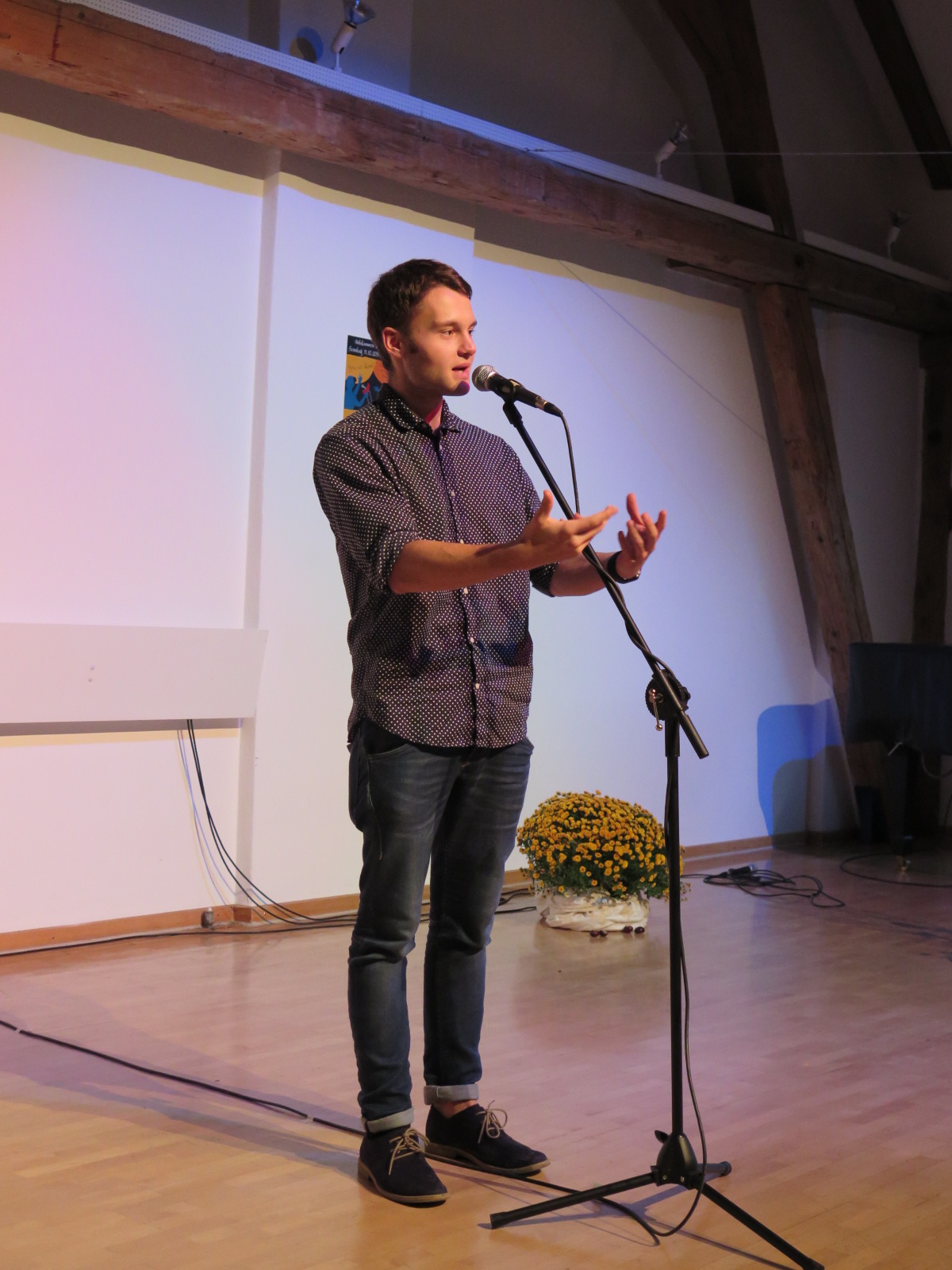 Dominik Erhard, Germanistikstudent und bereits mit einem bayerischer Meister Titel des Poetry Slams behaftet, plädierte für einen Standpunktwechsel. Warum nicht einmal anders sein, als das Klischee es vorgibt? Und das in allen Bereichen.