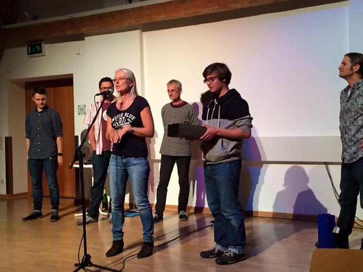 Und schon zog Urte los – wie einst Jake und Elwood Blues, wenn auch nicht „Im Namen des Herren“, aber doch im Namen der AGENDA 21 Olching – und reaktivierte alte Kontakte aus gemeinsamen Slammer-Tagen in der Hexe in Gröbenzell vor mehr als zehn Jahren. Volker Keidel, damals Slam-Master, der sich heutzutage als Buchautor auf Lesebühnen tummelt, erwischte sie im Stragula beim Westend ist Kiez. Er sagte spontan zu, ohne sich im Klaren zu sein, dass sein Text dieses Mal weniger mit Fußball, sondern mit Nachhaltigkeit zu tun haben sollte. Einen weiteren Slammer aus alten Tagen spürte sie im Raum Augsburg auf. Peter Knuhr, längst „poetry-slam abstinent“, und mittlerweile auf textlichen Performance Pfaden unterwegs, mit Projektionen eines Grafikers und Musik. Aber so ein alter Hase des Poetry Slams hat auch zu diesem Thema einen Text im Gepäck. Zwei waren also gefunden, vier „Gesetzte“ sollten es sein. Denn beim Poetry Slam bleiben stets Leseplätze für spontan entschlossene, mutige Poeten frei. Nun fehlten ihr noch zwei! Und wie an junge Slammer herankommen? An dieser Stelle sei verraten, dass Urte – gegen ihren Schwur handelnd – seither einen Auftritt bei facebook hat! Denn nur dort, so riet man ihr, bekommt man die Kontakte zur Szene. Und es hat sich gelohnt, denn dadurch konnte der Master dieses Slams, Jan Haas, vier Kandidaten und eine Spontanmeldung dem gespannten Publikum ankündigen.